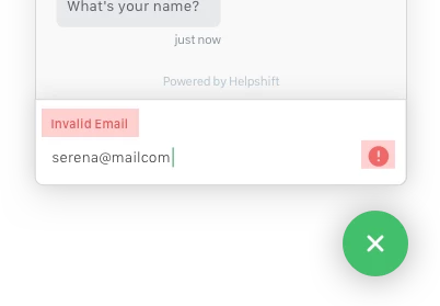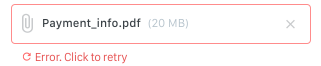 | Error color | Red (dark, #e65050) | Error text and icon color below the form elements (input boxes and attachment) Error text and icon color below the user bubbles![]() |