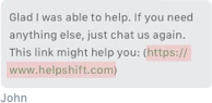 The color of links in the support message bubble. |